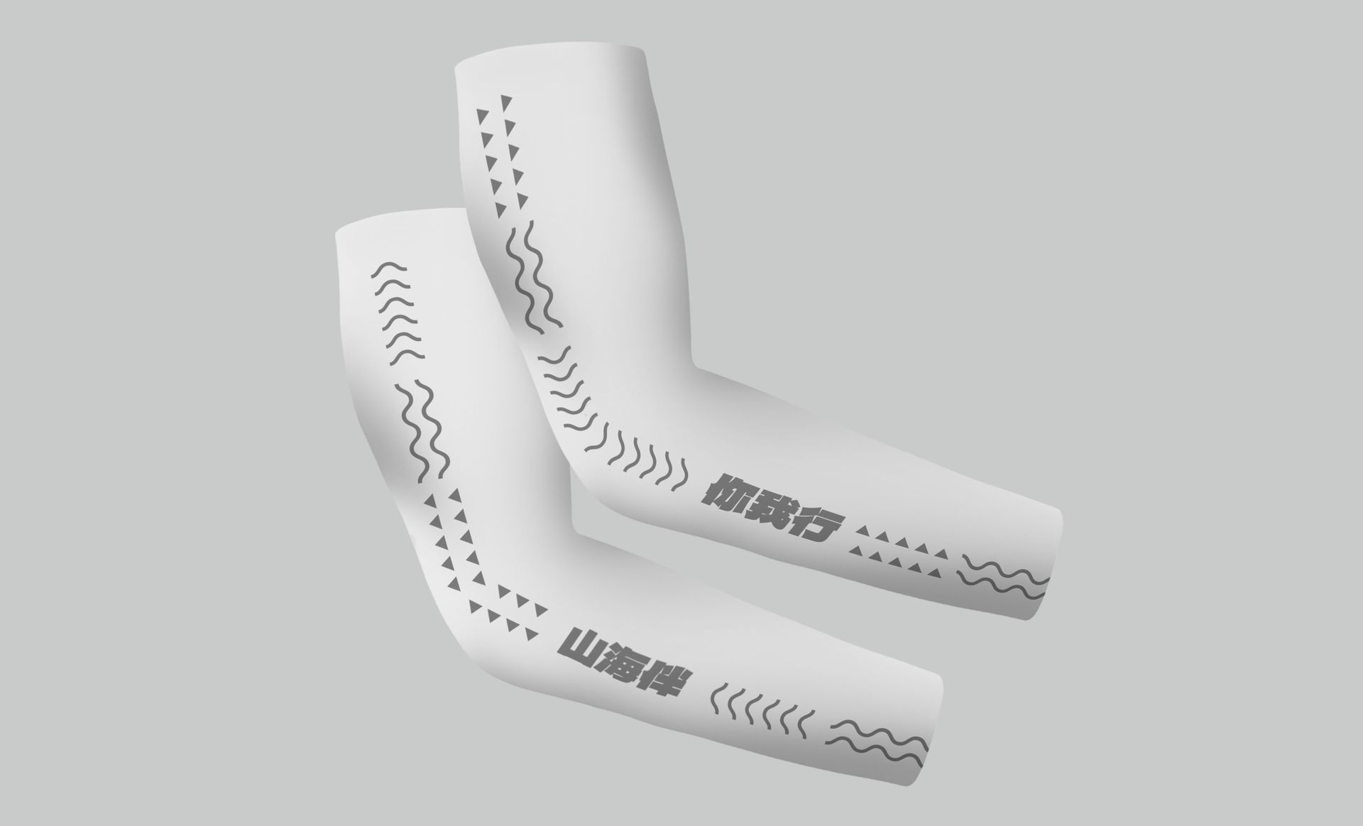 以一面深藍、一面純白的雙面設計呈現,象徵日夜交替與旅程中的多樣風景,將活動主軸圖形元素貫穿全體,以連續的圖樣延展,形成專屬於本次單車環島的視覺語言,因此無論哪一面朝外,都是對環島精神的演繹:堅毅踏實、迎向挑戰、持續向前。