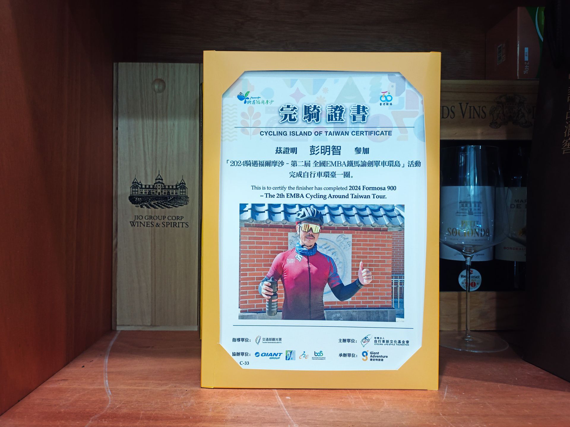 專屬於本次全國EMBA單車環島的完賽獎狀,記錄下挑戰的里程與騎士的名字。它不僅是一紙榮耀,更是一段旅程的最佳見證。